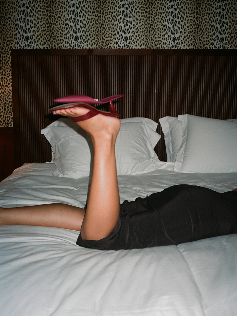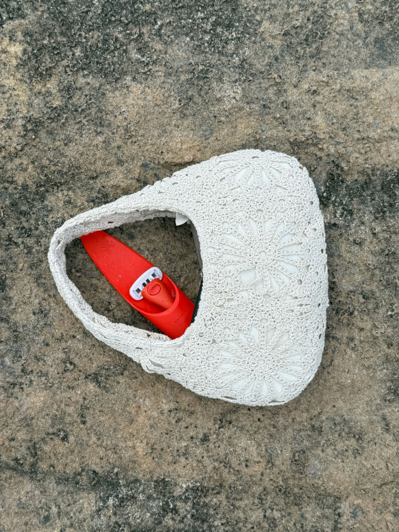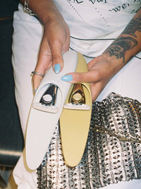 Slide your Estrid razor into its travel razor case, fold the flap over and push it into the fold to transport your razor safely.