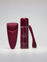 The Ruby Set brings together everything you need for a midnight-smooth routine — our iconic Estrid Razor, the Ruby Haze Shave Gel, and a glossy cherry Travel Case made for nights that don’t end early.