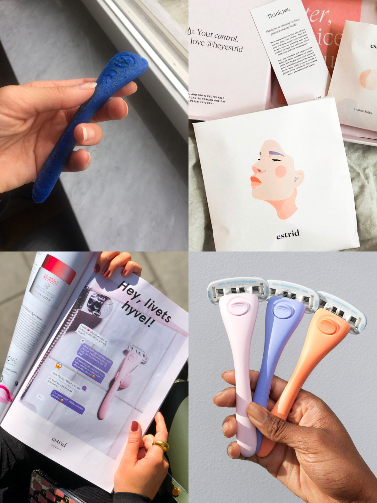 Up against a massive market leader like Gillette, who owns more than 70% of the market share, Estrid was an underdog from the start. Through sheer grit, things started to happen. They worked mainly from Ben’s apartment in Södermalm, where he slept in the kitchen next to the cheap 3D printer they’d bought to make razor design samples—in fear of it catching on fire. They took on virtual freelancers from almost every continent—a scrappy community who worked on everything from branding to website code.