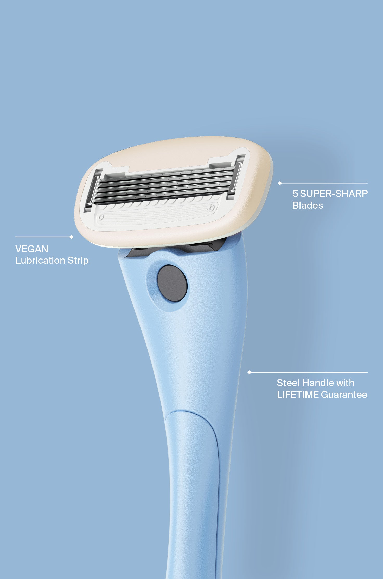 Your skin deserves the best! For a sharp, close (and more hygienic) shave, we recommend changing our blades every 5-7 uses. While our blades are super sharp and effective, they do hard work and eventually need to be replaced. Our easy subscription service sends fresh blades right to your door with free shipping, so you never have to go with a dull blade again.