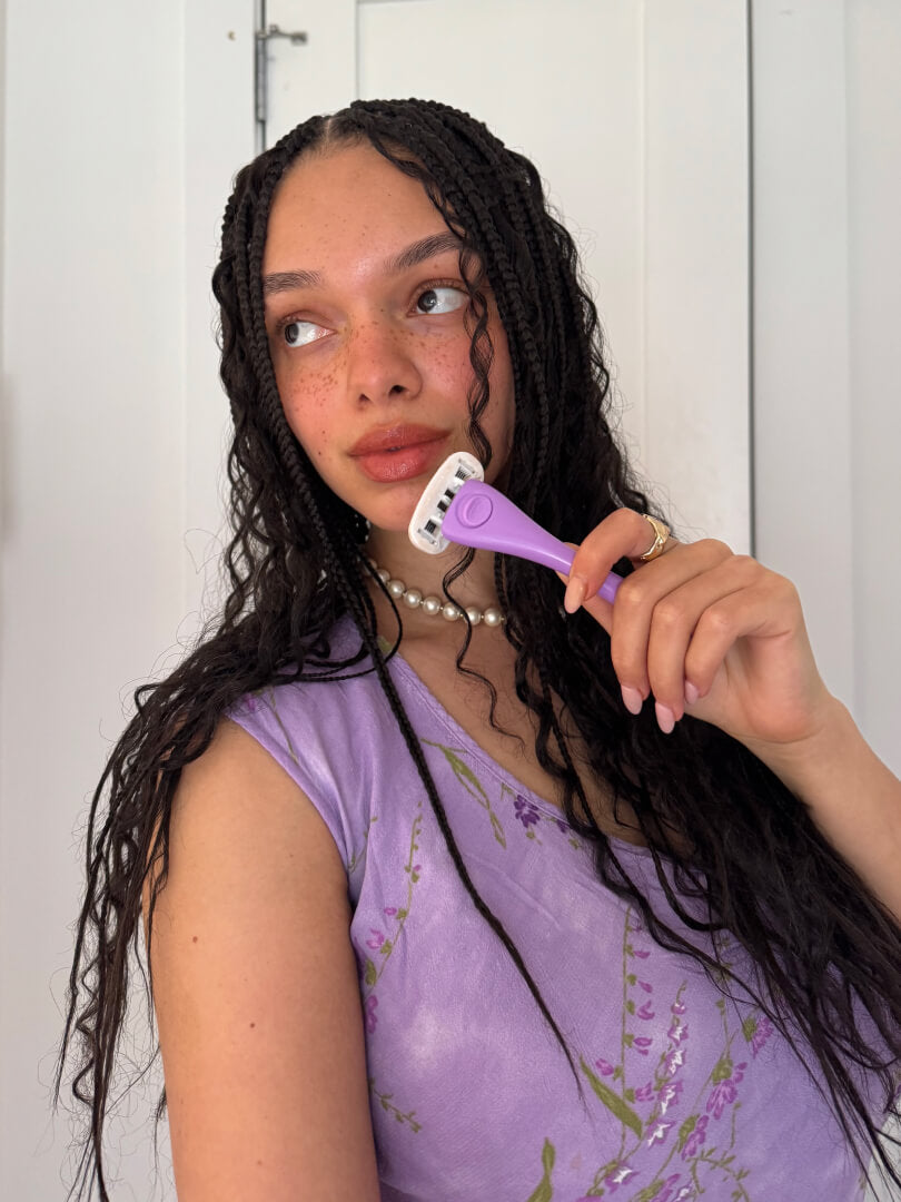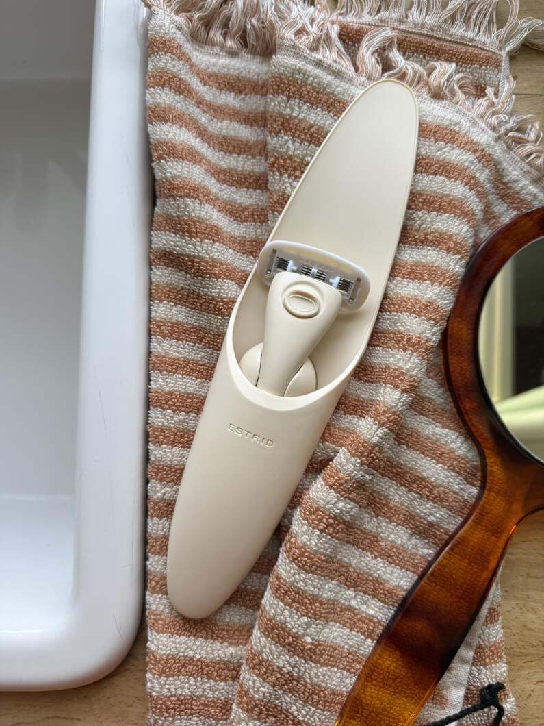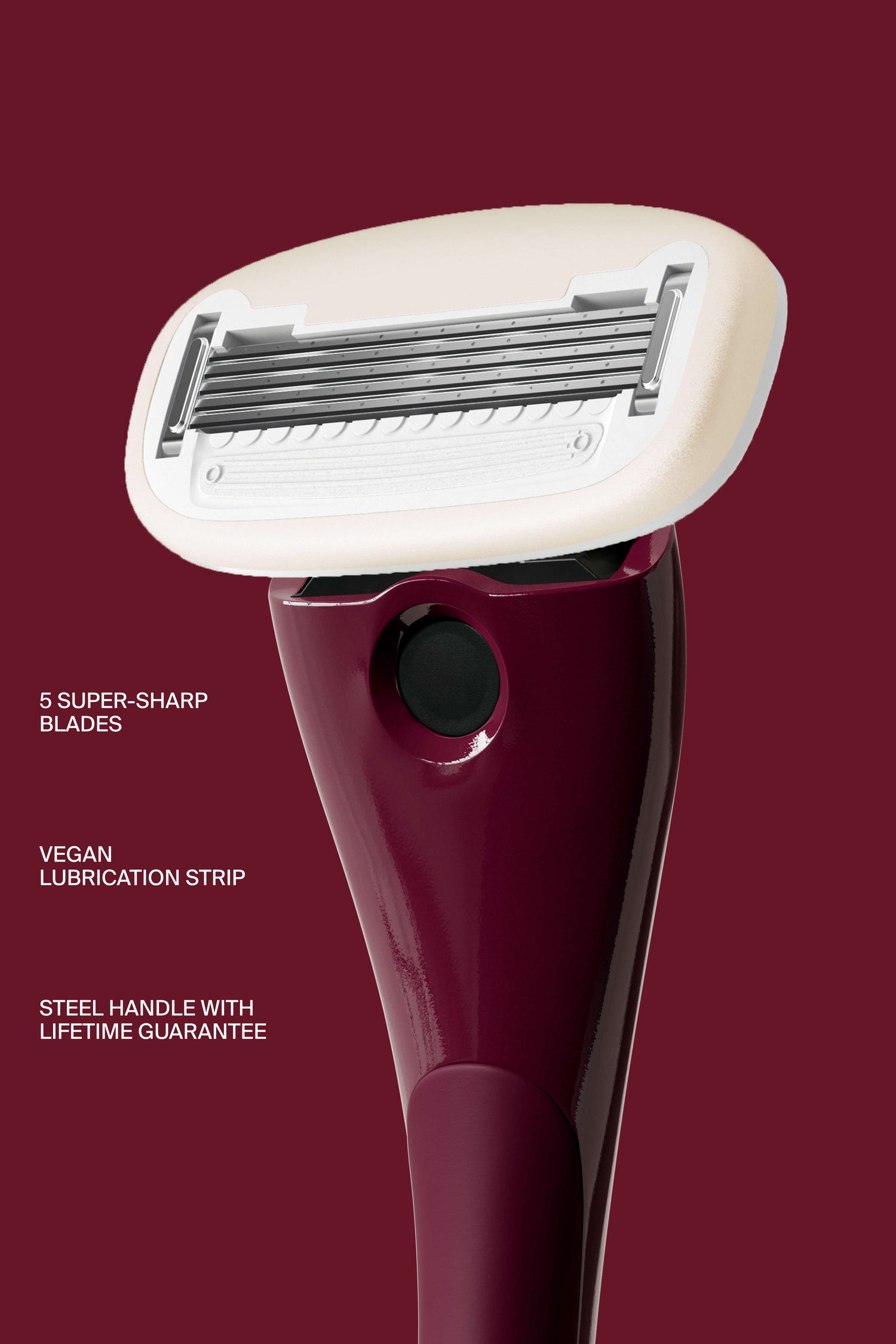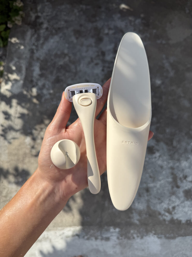 Made with sensitive skin in mind, the Estrid razor features five sharp blades for a close shave and a vegan hydration strip to protect skin, prevent irritation, and provide a smooth glide.