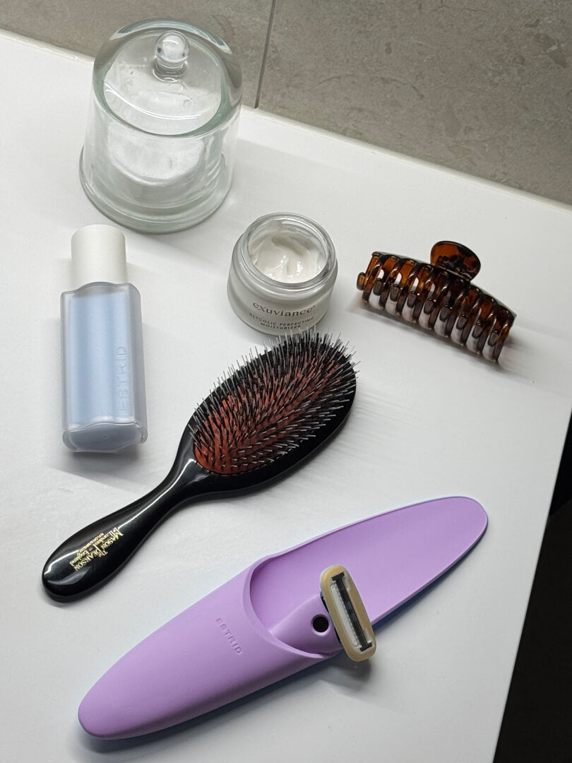 Everything you need for the perfect shave: a nourishing shave gel, the perfect razor, and a cute case for when you’re on the go.